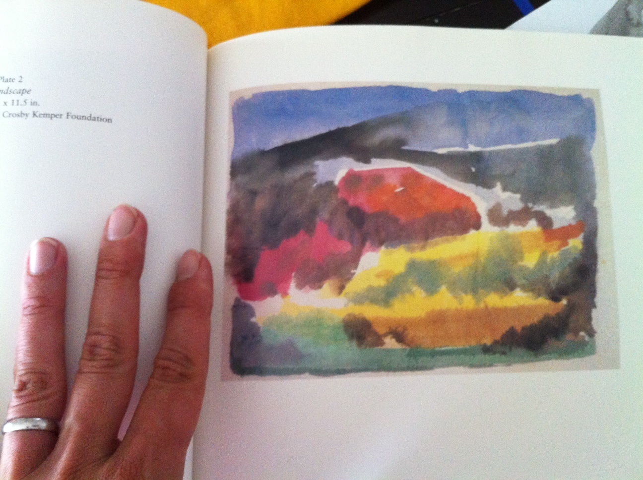 I'm a better copier than "out of thin air" artist, so I started pulling out some art books from our shelves. M found a book of O'Keefe watercolors and we looked at it a few evenings ago with A on the balcony. We talked about the colors with her, and talked about what different paintings could be of.